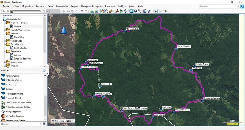 É aí que eu transfiro a tracklog definitiva para o Garmin BaseCamp onde crio os principais PI e todos os PP planejados. Feito isso é só transferir para o Oregon e partir.
