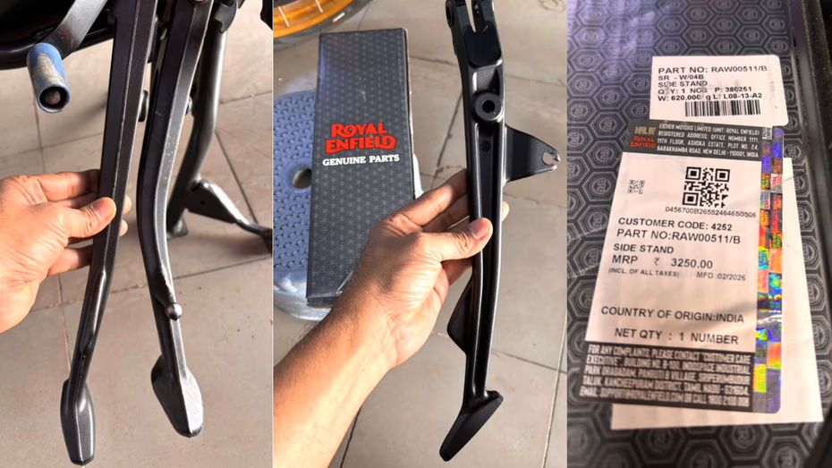 A Royal Enfield resolveu um dos pequenos incômodos relatados pelos proprietários da Royal Enfield Himalayan 450: a moto inclinava demais quando estava apoiada no descanso lateral. Isso dificultava levantar a moto depois de estacionada e exigia mais espaço para o estacionamento.