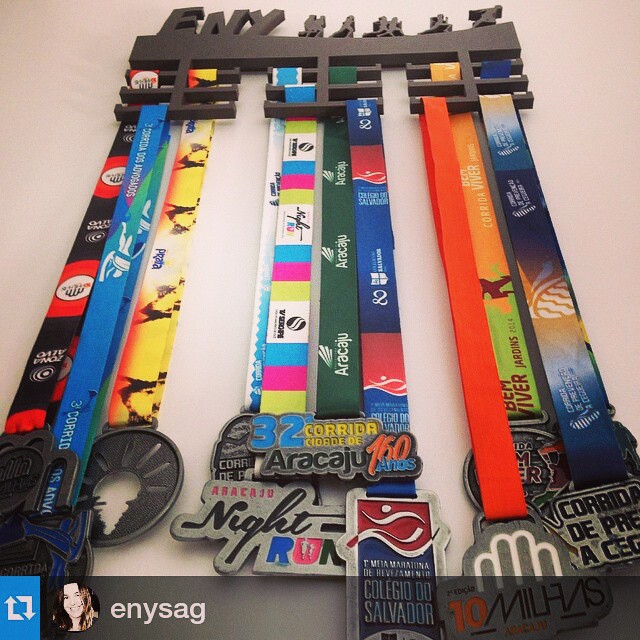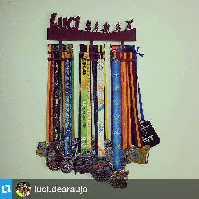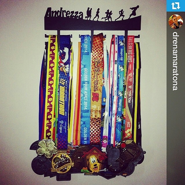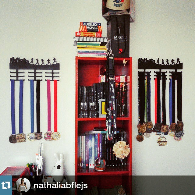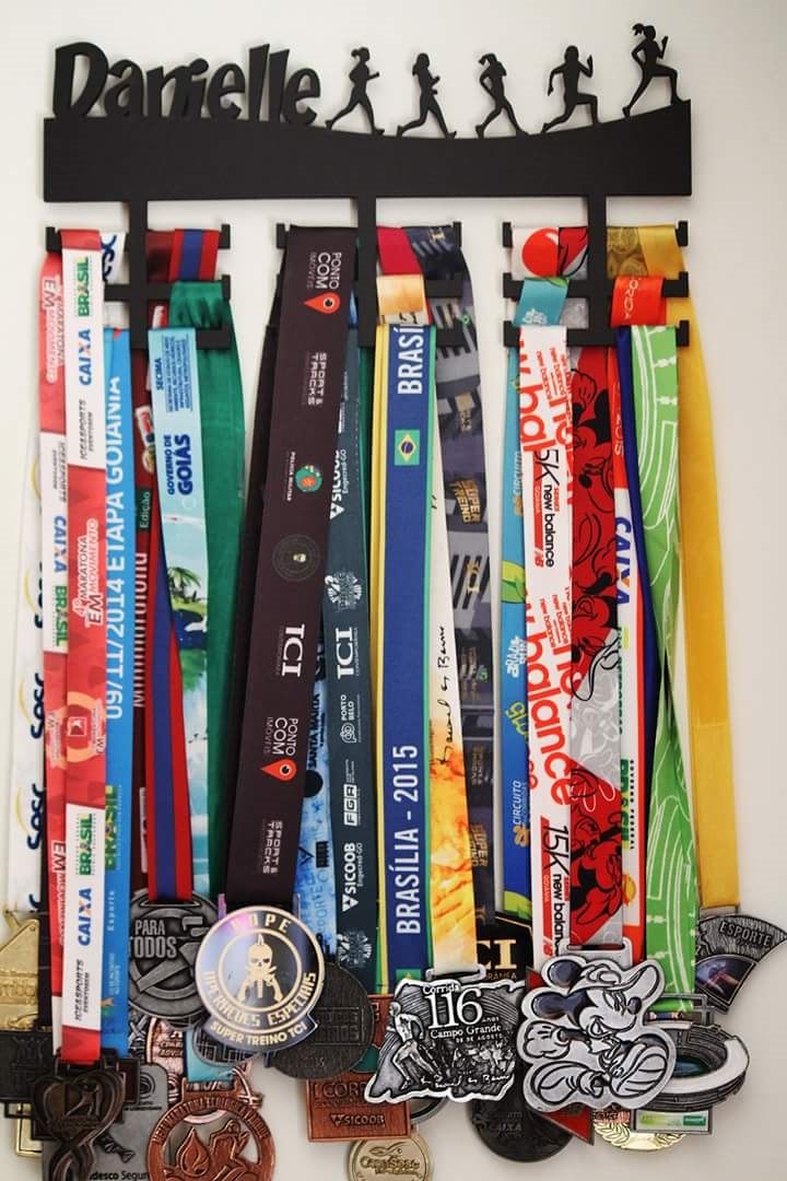 Você já sabe que temos um Porta Medalhas de Corrida para você poder exibir suas maiores conquistas na sua sala preferida, afinal, se colocam quadros de pintores, porque não podemos colocar nossas medalhas na sala? Em casa, colocamos as nossas medalhas mais importantes, minhas e da Bianca na parede do hall de entrada da sala.