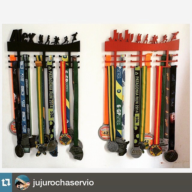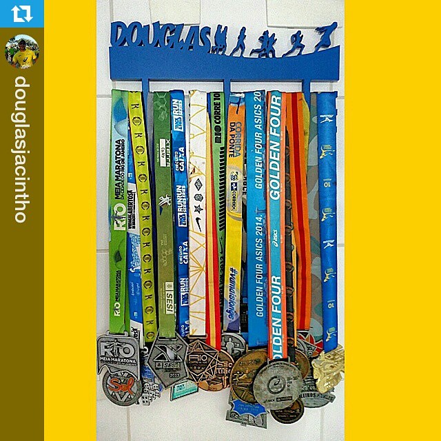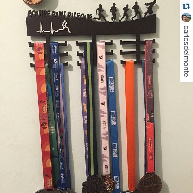 O Porta Medalhas de Corrida é feito em madeira MDF de alta densidade o recorte é feito com laser, tem capacidade entre 40 e 60 medalhas, mas pode acomodar até 100 medalhas leves. Eu estou longe disso, mas conheço corredores que tem muito mais. Podemos fazê-lo com qualquer nome ou palavra, desde que que fique lecal e proporcional no espaço de 35x17x1,5cm o que nos dá +/- 10 letras.