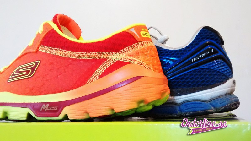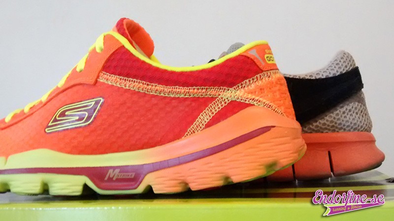 Quando calçamos o Skechers GORun 2, e isso é mais evidente ainda na versão anterior, a sensação é “Uau! Onde está o calcanhar?” porque é nítida a falta de material na parte de trás do tênis em comparação à região do médio pé. Essa característica torna o tênis até pouco confortável para caminhar e para uso geral, mas para correr rápido é sensacional.