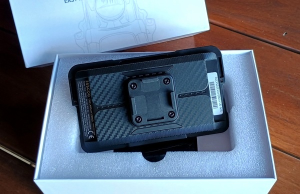De nada adianta ter o Mapa no guidão se você não consegue enxergar a rota quando o sol bate forte ou se precisa cobrir o aparelho com um plástico na primeira garoa. É aqui que o Essgoo de 5 polegadas mostra a que veio.